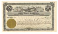 Crescent Silver Company of Cincinnati. Two nice mining vignettes at top and side. A third vignette at bottom is the state seal of Colorado with the notation " Property in Colorado". Ohio. Unissued but dated 18__. $10.00