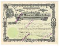 Guelph Mining and Milling Co., Ltd. Miners working inside a mine. Six small mining vignettes are incorporated into the frame. Wardner, Idaho. Unissued. 190_. $5.00
