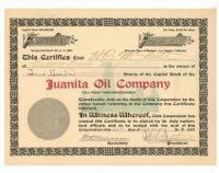 Juanita Oil Company. Faint background vignette shows drilling rigs. Embossed gold seal shows Los Angeles, California. 1901. Uncancelled. | $8.00 |