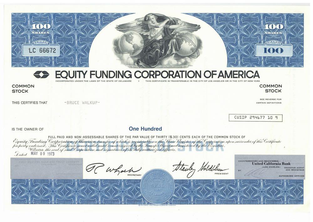 Equity Funding Corporation of America. Lady with globes encircled by cables. Delaware. 1973. Uncancelled. Famous financial failure.