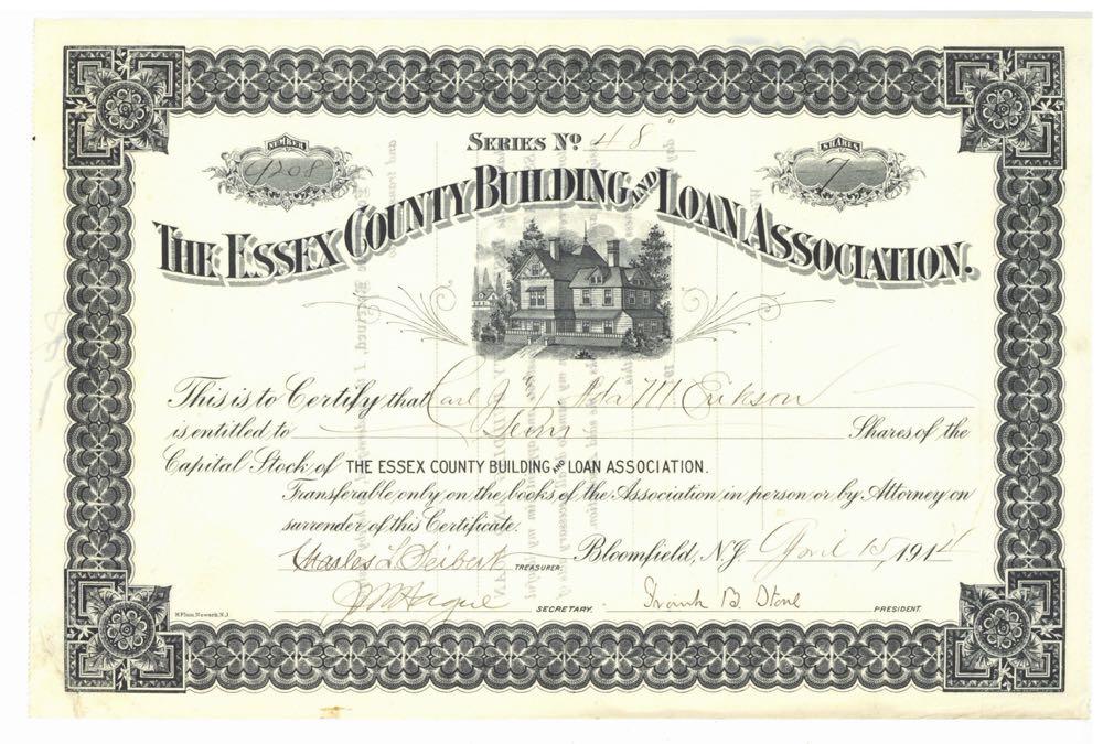 Essex County Building and Loan Association. Old house. Bloomfield, New Jersey. 1920s. Minor edge tear taped on reverse.