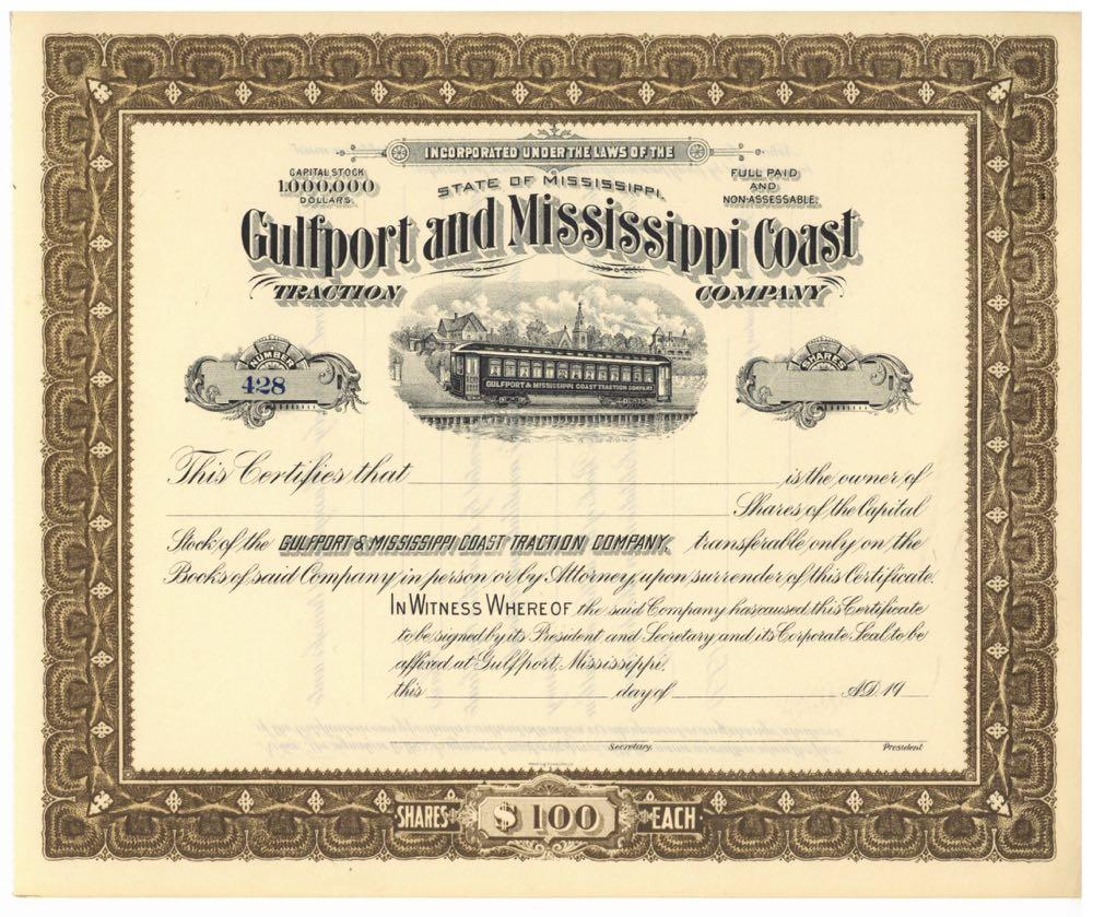 Gulfport and Mississippi Coast Traction Company. Trolley car with company name on the side. Gulfport, Mississippi. Unissued.