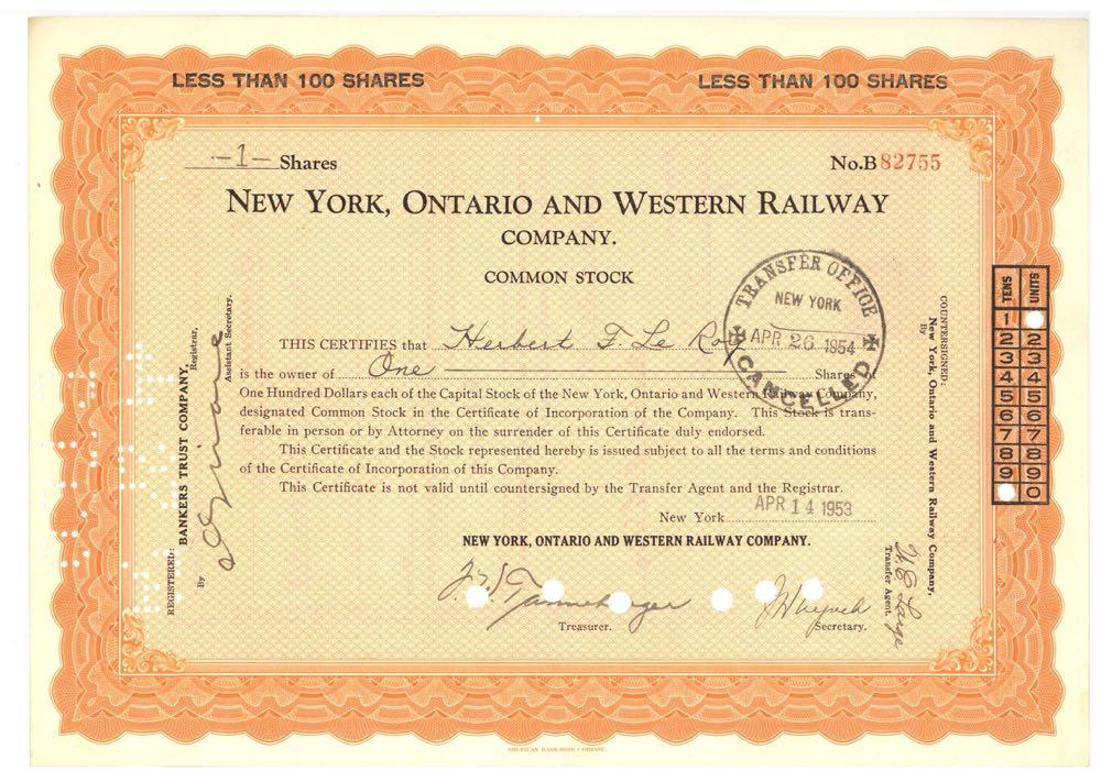 New York, Ontario and Western Railway Company. No vignette. 1940s-50s