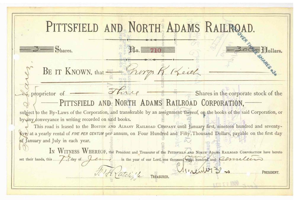 Pittsfield and North Adams Railroad. No vignette. 1917. Light folds