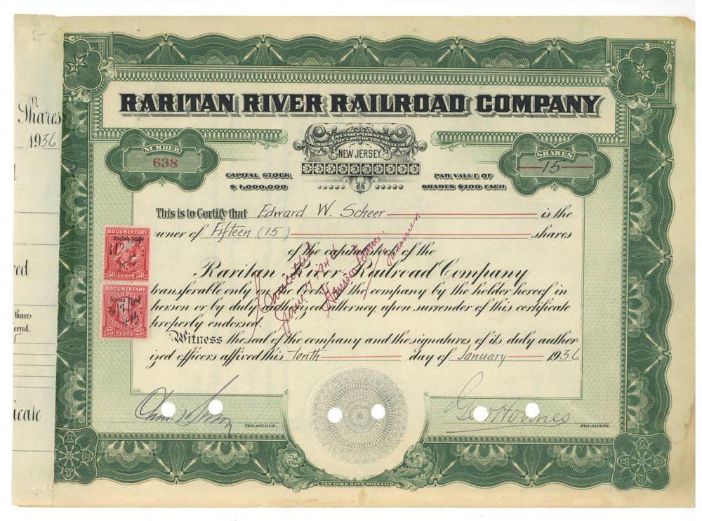 Raritan River Railroad Company. No vignette. New Jersey. 1960s. Pen cancel across face.