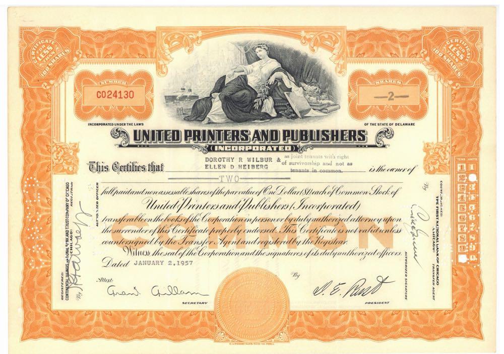 United Printers and Publishers. Woman with books, ship. Delaware. 1960s.