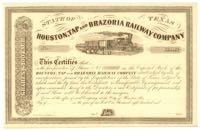 Houston, Tap and Brazoria Railway Company.[Bargain Lot of 3 pieces] Funnel stack freight train smoking along. Bales and barrels along side track. Houston, Texas. Unissued but dated 18__. by Cra $15.00