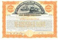 New York Central and Hudson River Railroad Company. [Bargain Lot of 10 pieces, orange] Steam engine traveling on dock, steamship. Inscribed' Lake Shore Collateral'. 1960s. Horizontal format bond. by ABN. Vertical fold $12.00