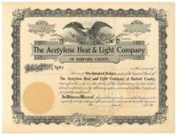 Acetylene Heat & Light Company of Harford County. Eagle with shield, liberty cap. Unissued but dated 190_. $9.00