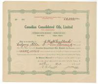 Canadian Consolidated Oils, Limited, No vignette. Calgary, Alberta, Canada. 1914. Uncancelled. 1 inch tear at top border of certificate. You will receive the same certificate pictured. $4.00