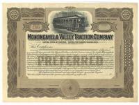 Monongahela Valley Traction Company. Enclosed street car with company name on side. West Virginia. Unissued. $7.00